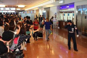 いつもは、バンドのメンバーたちと一緒に韓国と日本を行き来していたイ・ホンギだが、今回は一俳優として映画のプロモーションのため単身で来日。羽田空港の到着出口から青いTシャツとジーンズというカジュアルな姿でホンギが登場すると、出迎えたファンたちから熱い声援が!「一人で来たのに空港で出迎えがあるなんて思っていなかった!」とホンギ自身、ちょっとびっくりした様子。また、マスコミから「映画俳優としての来日はいかがですか?」との問いに「すごい楽しみです!」と意欲的にコメントを残し、「これから朝ご飯を食べに一蘭(行きつけのラーメン店)に行きます!」と茶目っ気たっぷりに空港をあとにした。